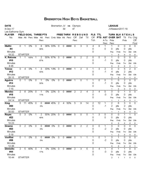 BHS Boys JV | 7 | 4 | 17 | 11 | 39 |