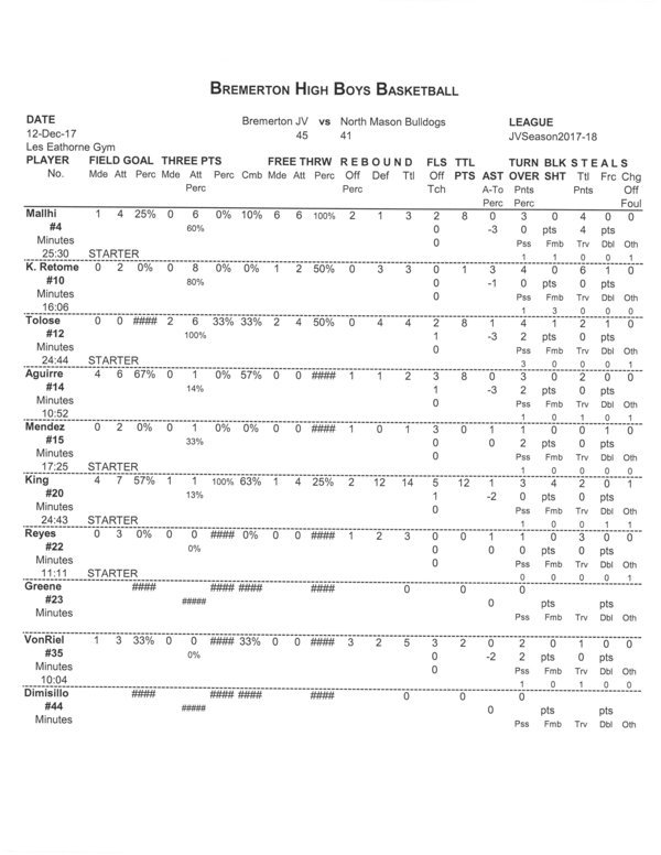 BHS Boys JV | 16 | 12 | 7 | 10 | 45 |