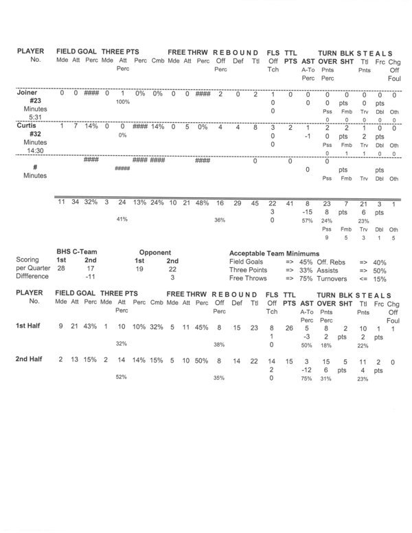 | 14 | Curtis, Cedric | 1 | 7 | 14.3 | 1 | 7 | 14.3 | .0 | 5 | .0 | 4 | 4 | 8 | 1 | 2 | .5 | 1 | 2 | 3 | 2 | ||||||