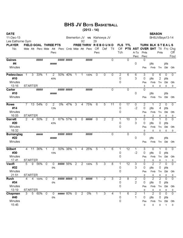 BHS Boys JV | 0 | 51 | 0 | 41 | 92 |