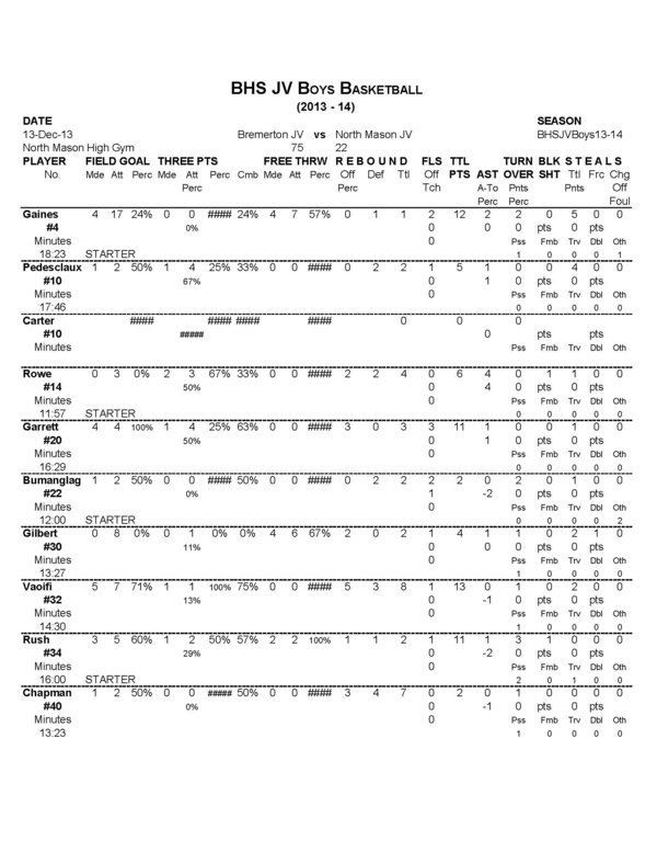 BHS Boys JV | 0 | 49 | 0 | 26 | 75 |