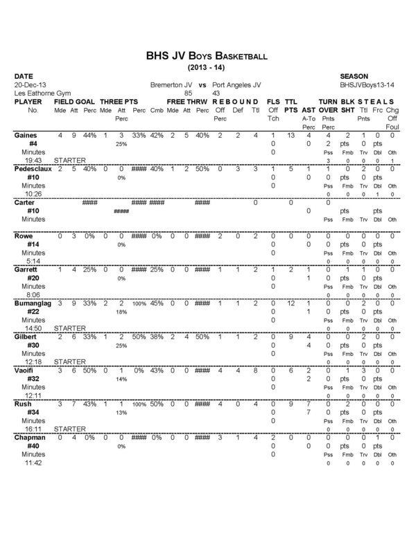 BHS Boys JV | 0 | 42 | 0 | 43 | 85 |