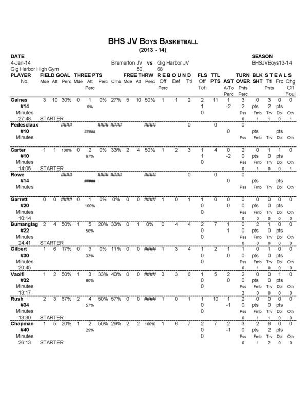 BHS Boys JV | 0 | 26 | 0 | 24 | 50 |