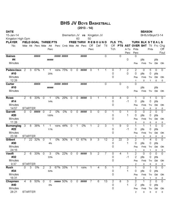 BHS Boys JV | 0 | 29 | 0 | 31 | 60 |