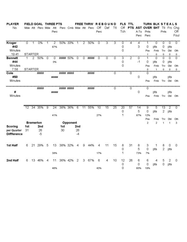 BHS Boys JV | 0 | 31 | 0 | 26 | 57 |