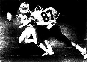 “He would go in there so fast he’d put it off the glass too hard,” described Eathorne of the turboguard he turned over this season to first-year coach Larry Gallagher. “He couldn’t let up. But he’s fun to watch. In football you never knew when he was going to go all the way and in basketball you never know what he’s going to do.”