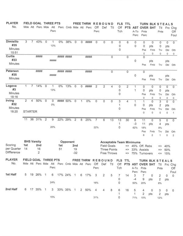 | Team Stats | 17 | 40 | 42.5 | 15 | 32 | 46.9 | 2 | 8 | 25.0 | 4 | 8 | 50.0 | 8 | 4 | 12 | 8 | 9 | .9 | 5 | 1 | 13 | 40 | |||