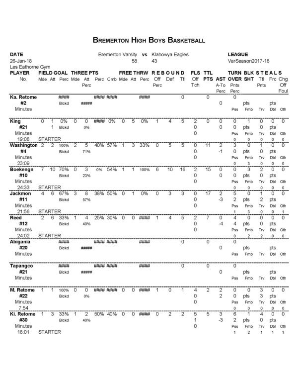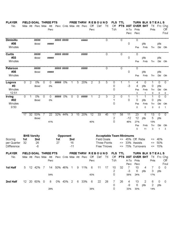BHS Boys Varsity | 18 | 14 | 15 | 11 | 58 |