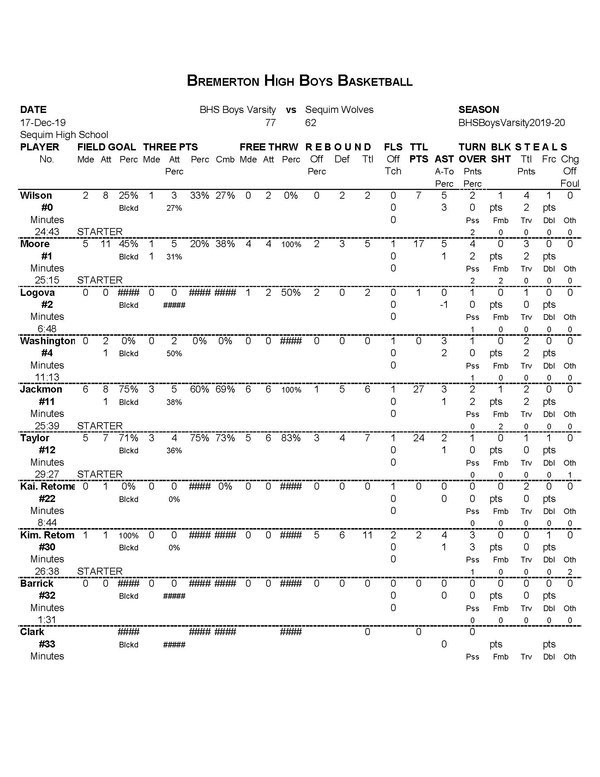 Sequim Wolves* | 20 | 13 | 16 | 13 | 62 |