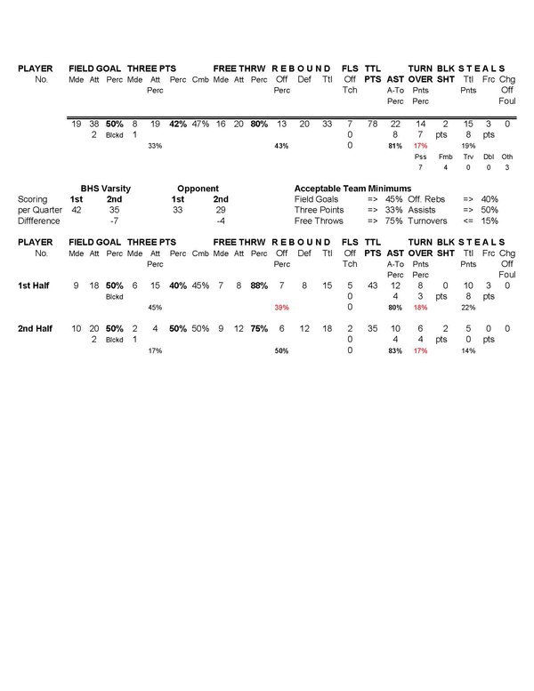 BHS Boys Varsity | 25 | 17 | 19 | 16 | 77 |