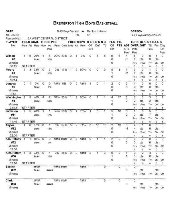 Renton Indians | 14 | 14 | 15 | 20 | 63 |