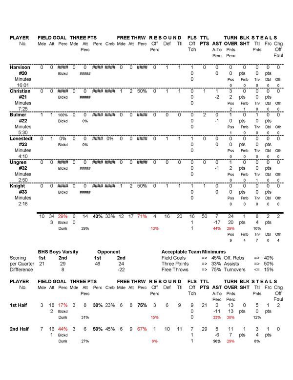 BHS Boys Varsity | 11 | 10 | 16 | 13 | 50 |