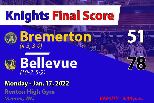 Bellevue came out on fire, using a trapping defense to take Bremerton further out of sorts, jumping out to a 28-6 lead after one quarter. The Knights recovered and played better the rest of the way but was unable to overcome the early deficit.