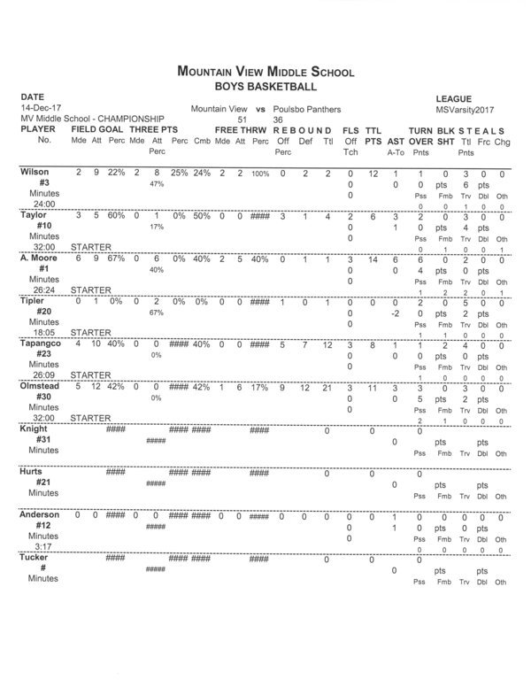 MV Boys Varsity | 12 | 14 | 13 | 12 | 51 |