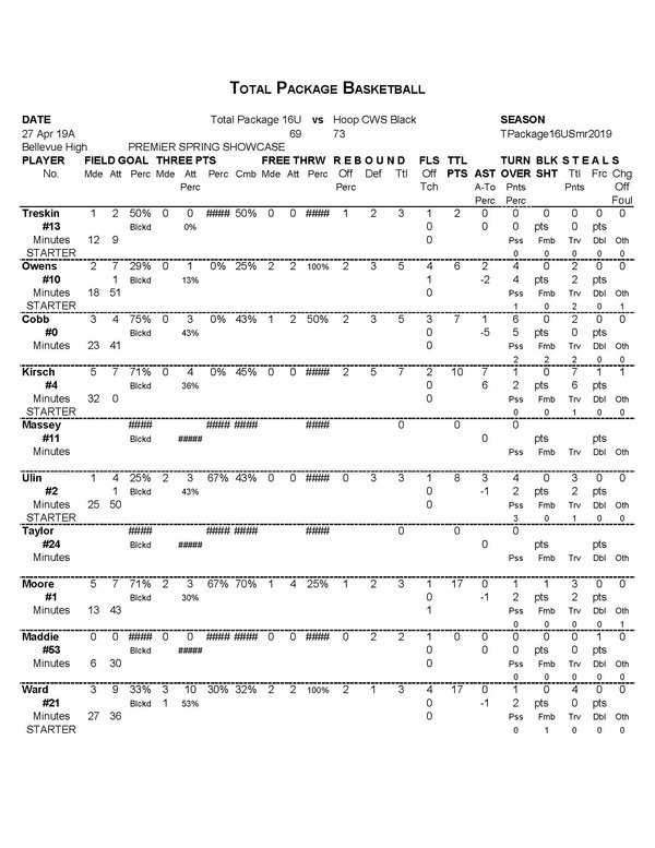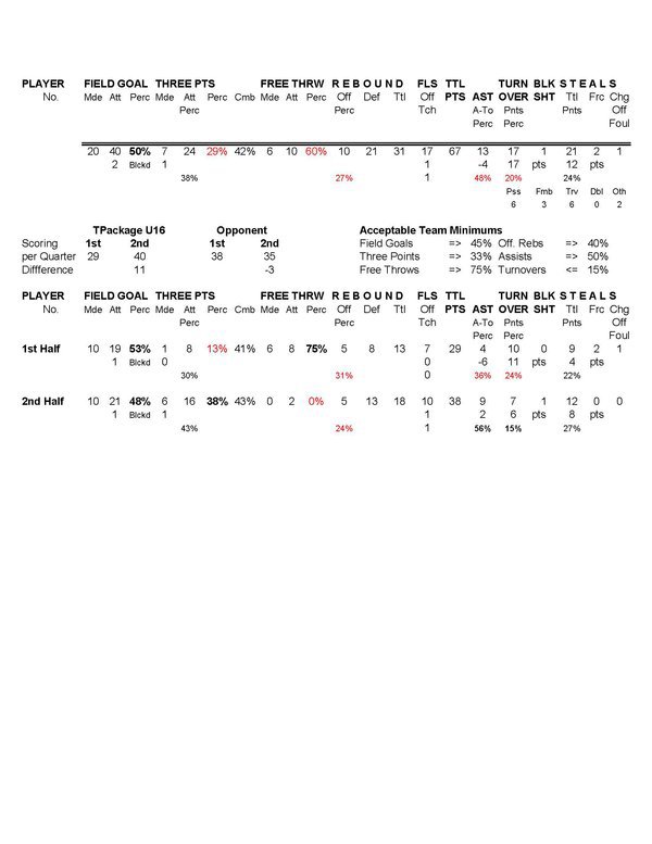 Total Package 16U Player Stats