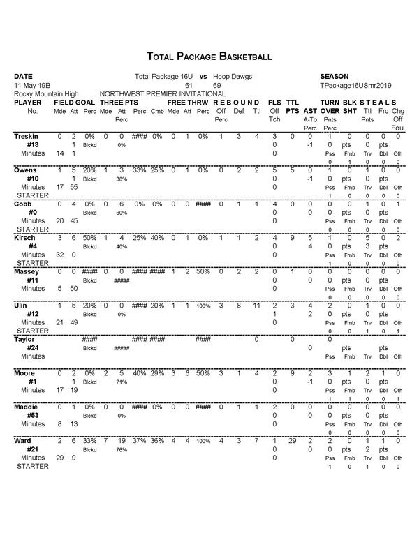 Total Package 16U Player Stats